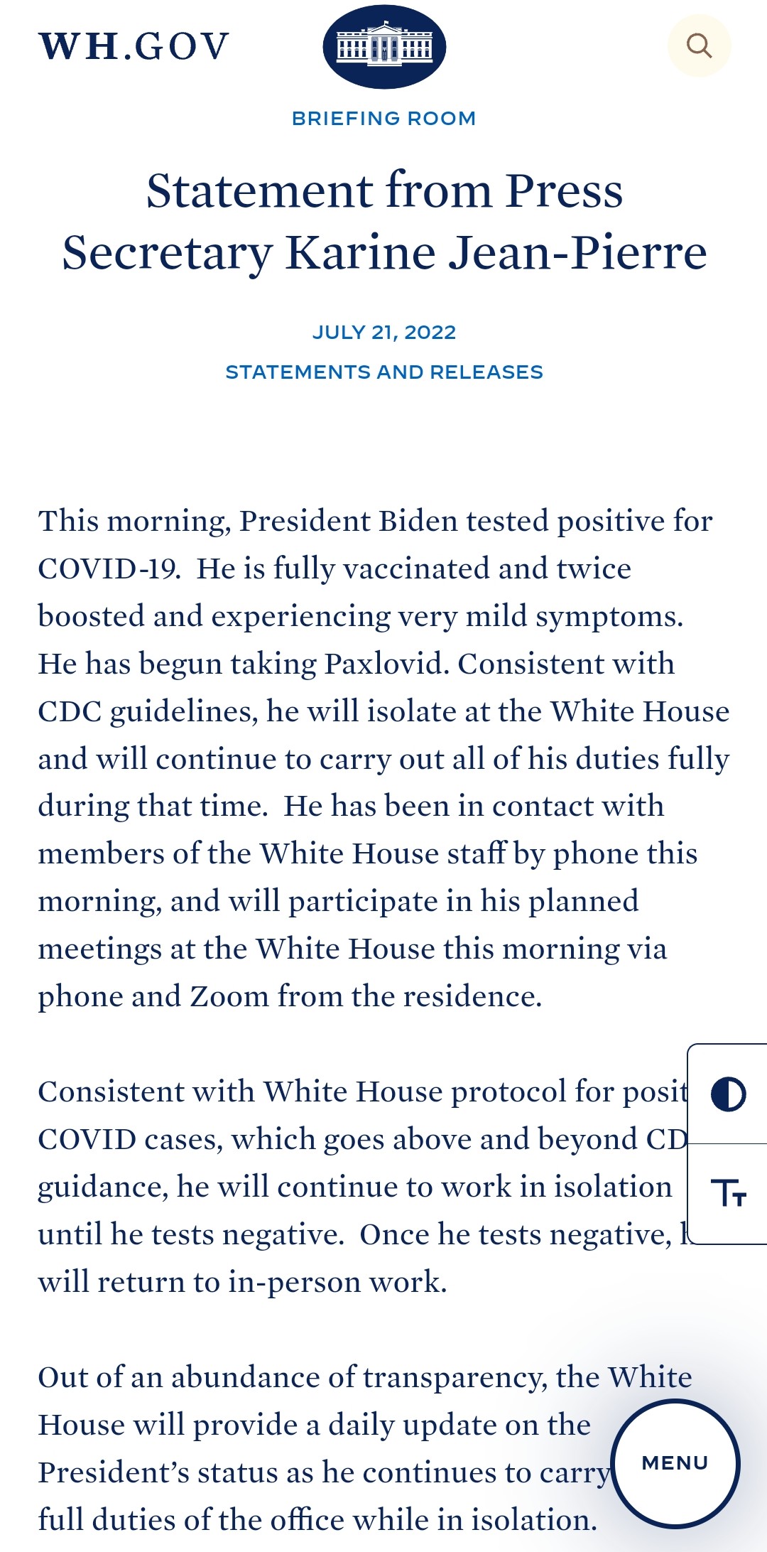 https://www.whitehouse.gov/briefing-room/statements-releases/2022/07/21/statement-from-press-secretary-karine-jean-pierre/